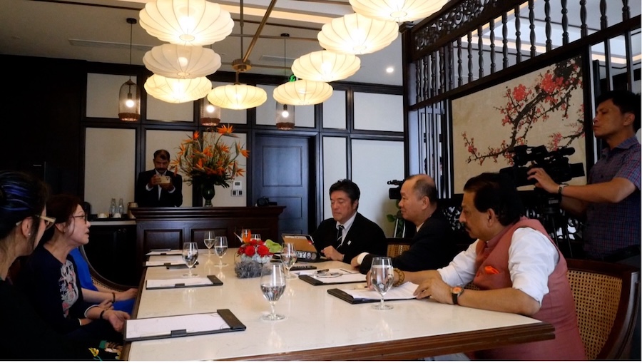 On September 16–17, 2025, the production team of the Shinzo Abe Film, a signature project of the AIWS Film Park, held important meetings in Nha Trang and began filming the first scenes. The settings—the AIWS House Nha Trang and the President Room of the Potique Hotel—provided the backdrop for opening sequences honoring Prime Minister Abe’s legacy of peace, democracy, and Indo-Pacific cooperation.